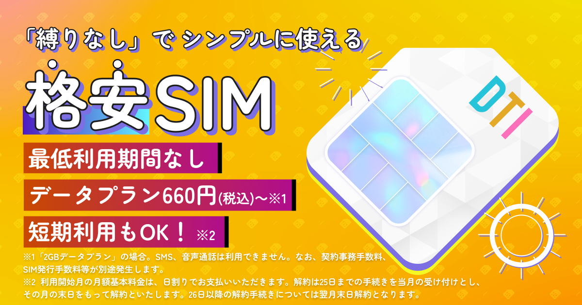 DTI SIMは「縛りなし」でシンプルに使える格安SIM。ギガをたくさん使うなら毎日1.4GBまで使える「すごギガ」がおすすめ!