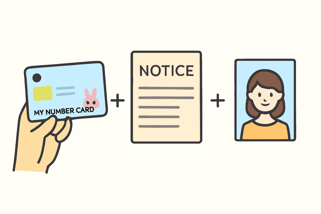 - 申請時に提示したものと合わせて、自治体指定の組み合わせを用意します。(例:運転免許証などのA書類1点、または健康保険証などのB書類2点)